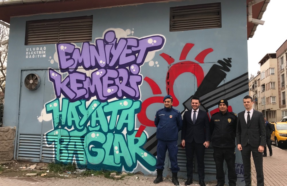 “Emniyet kemeri hayata bağlar” mesajını grafiti sanatçıları aracılığıyla trafo duvarına işleten şirket, böylelikle bölge genelindeki birçok trafoyu sosyal mesajla renklendirmiş oldu. Uygulamayı yerinde inceleyen Mustafakemalpaşa İlçe Emniyet Müdürü Cengiz Gültekin ve Mustafakemalpaşa İlçe Jandarma Komutanı Teğmen Emre Kavak, UEDAŞ Mustafakemalpaşa İşletme Müdürü Emre Şenhasırcı ve Kurumsal İletişim Müdürü Yusuf Ziya Yüce’den projeyle ilgili bilgi aldılar.